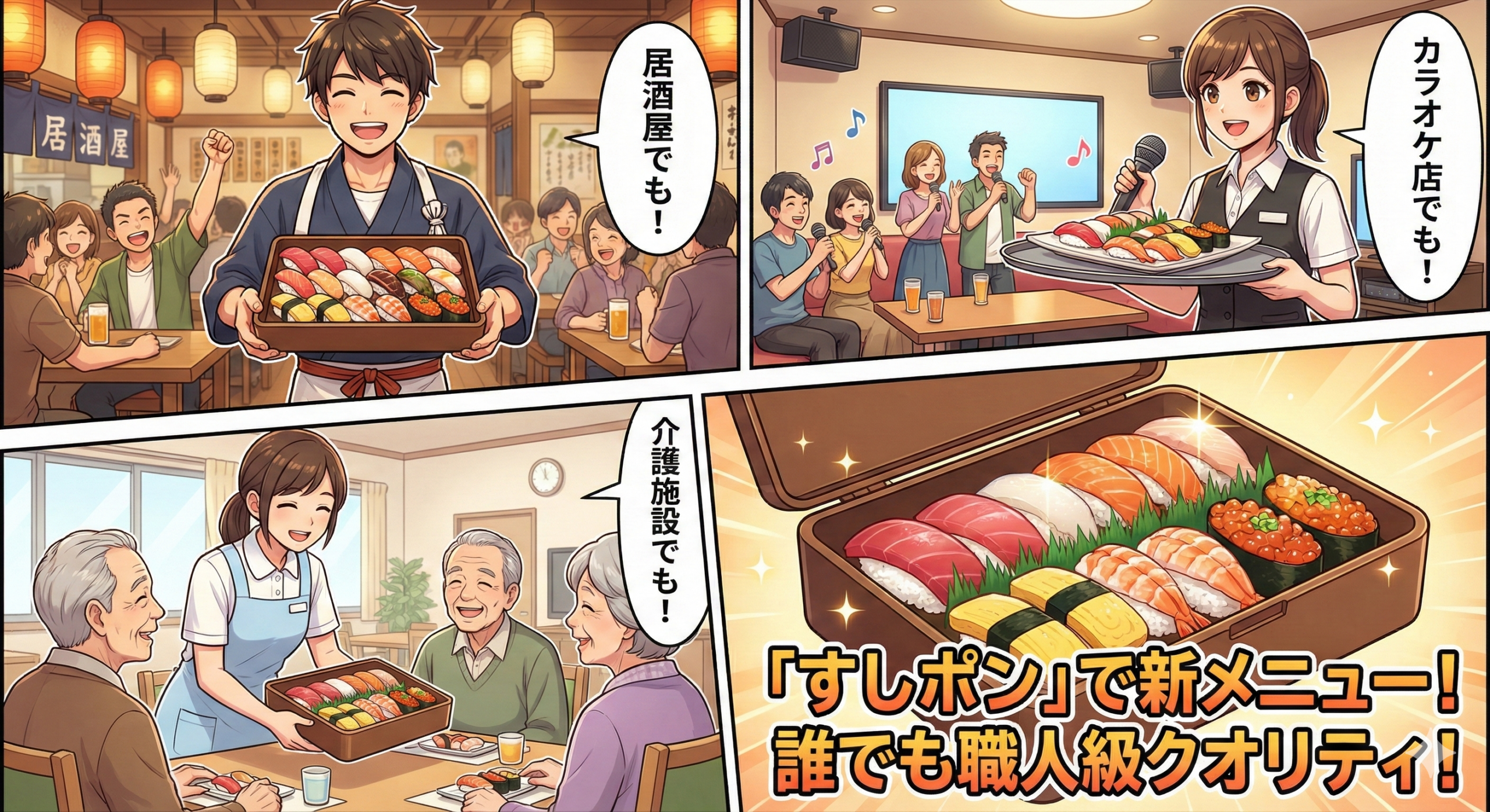 親方はその技を誰でも再現できるよう、「すしポン」を生み出しました。